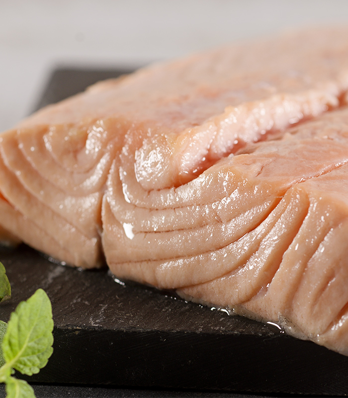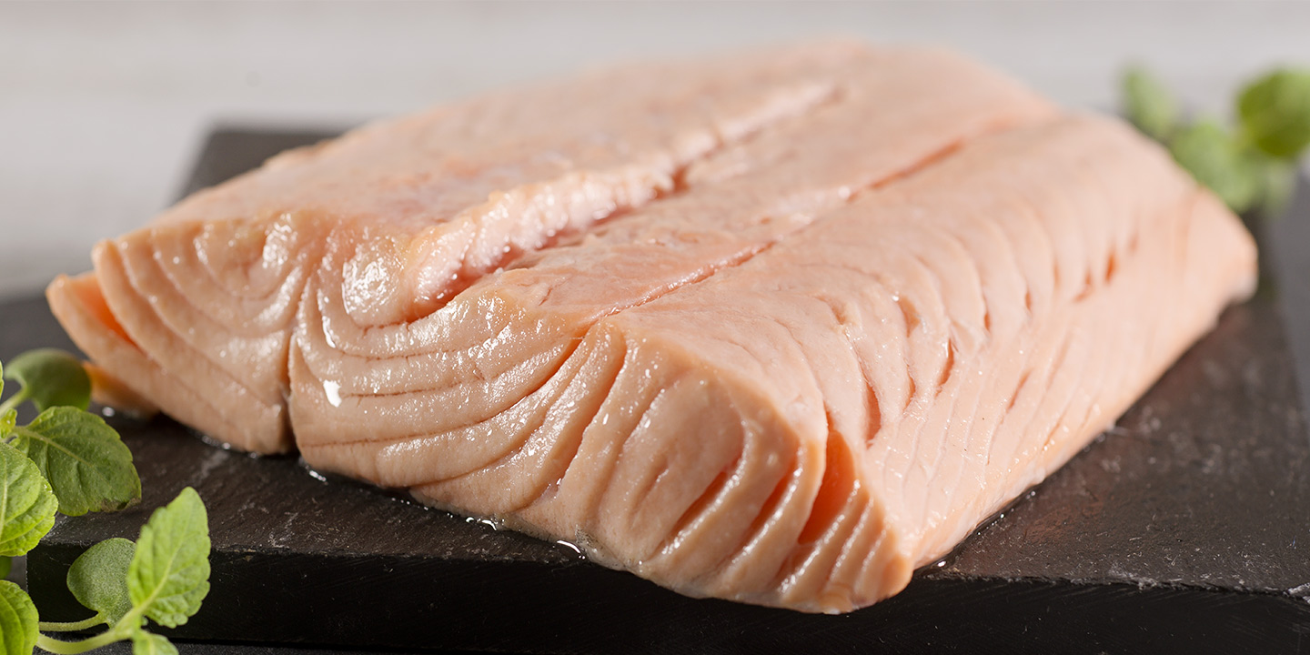 Whole fillets of prime quality Atlantic Salmon, ready to serve