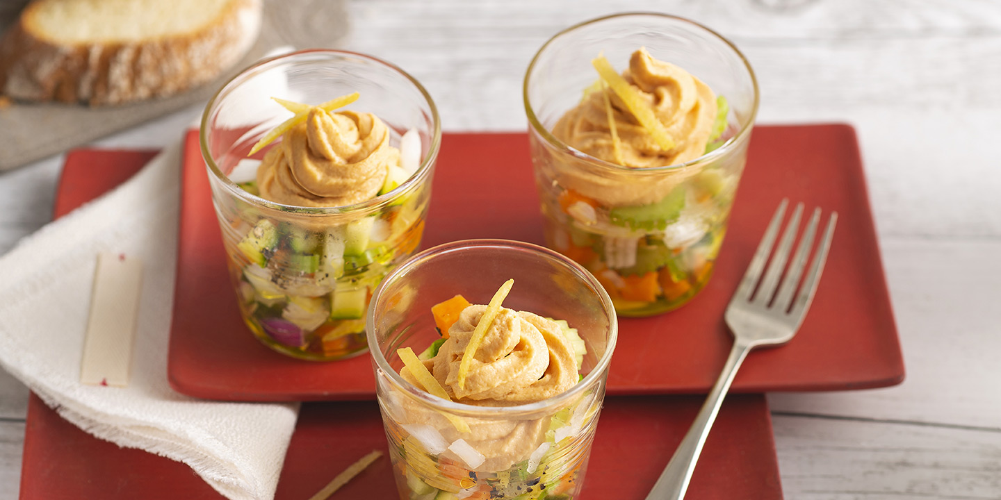Mini tartare of crunchy vegetable with Rio Mare Pâté Pink Salmon
