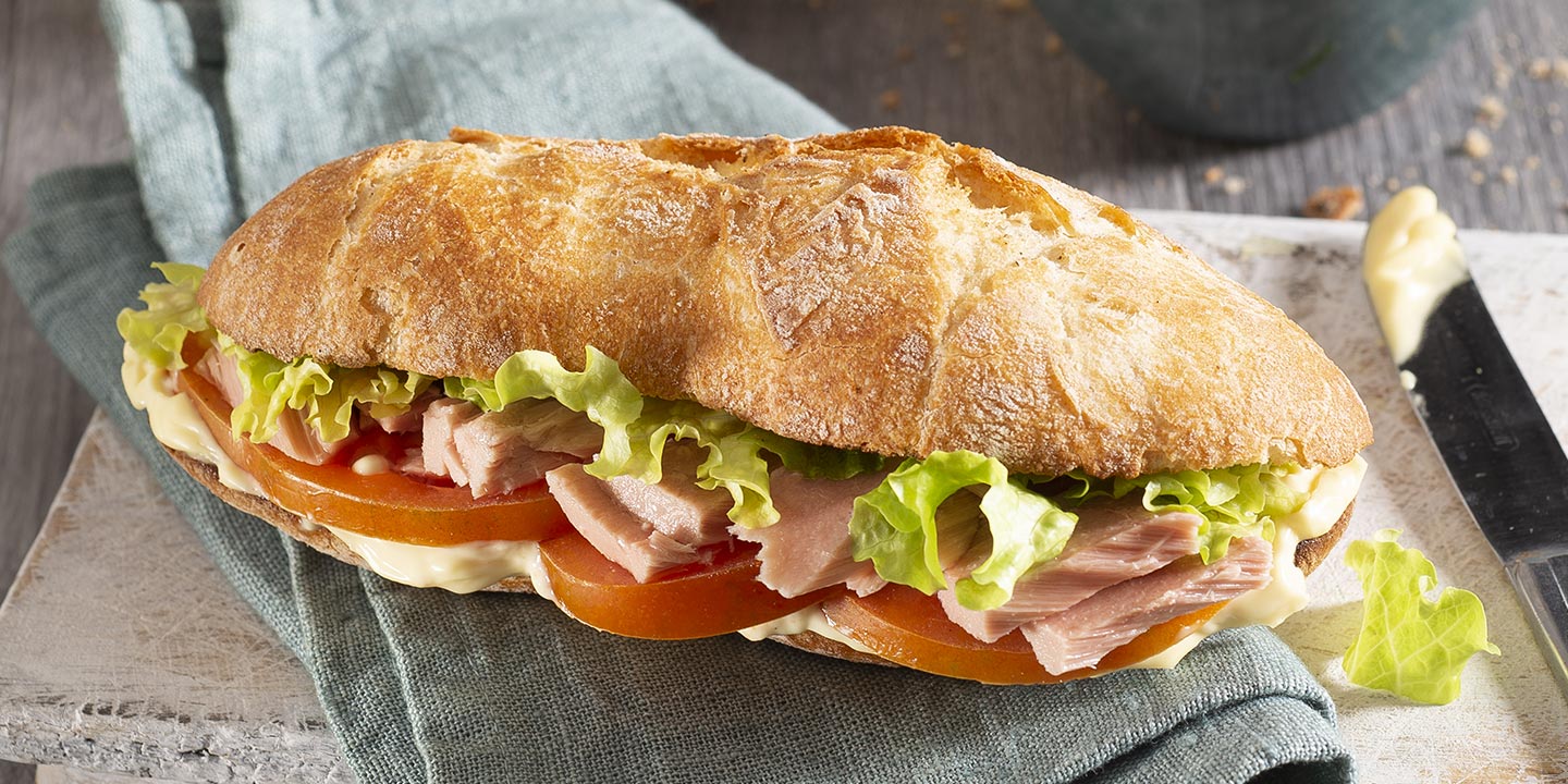 2. Spread the bottom halves of the rolls with the mayonnaise. Top with a few slices of tomato, the drained tuna and the lettuce leaves.