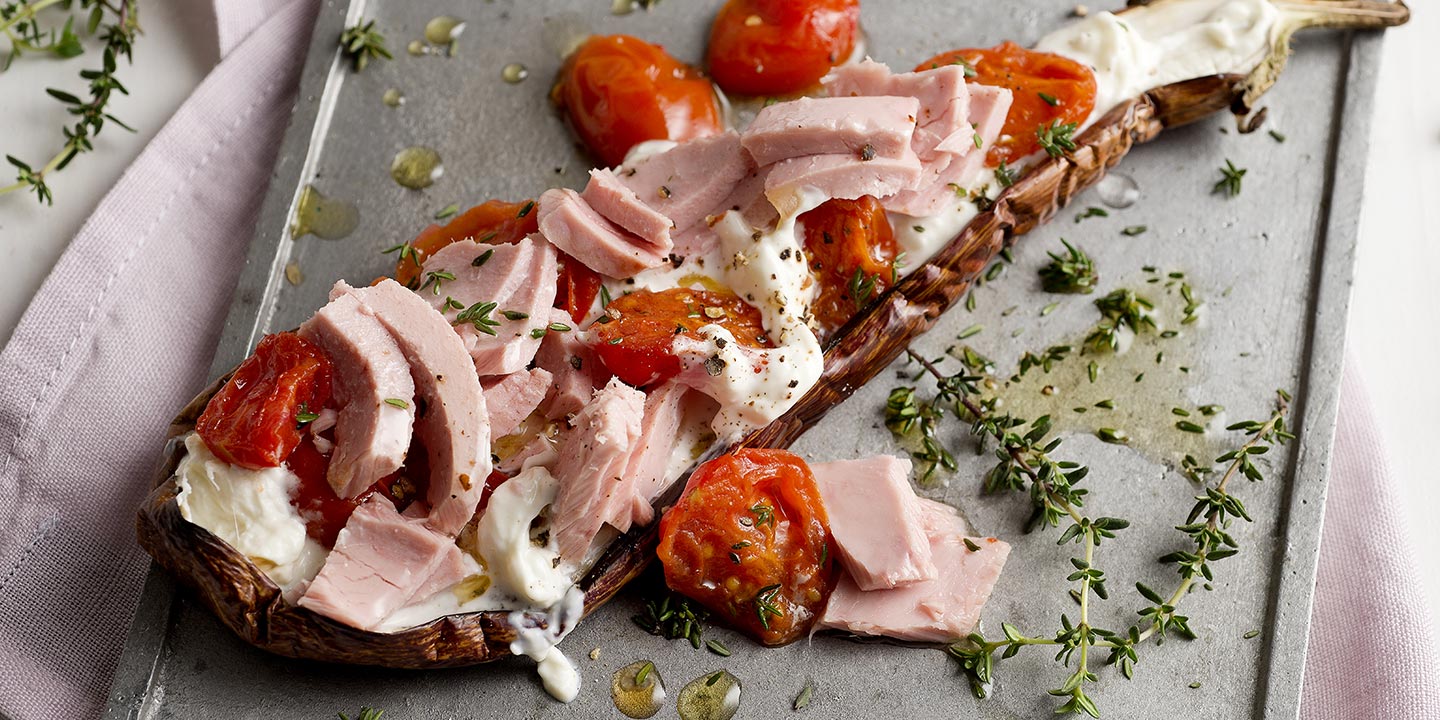 HomeRecipesTuna with Aubergines Roasted with Thyme